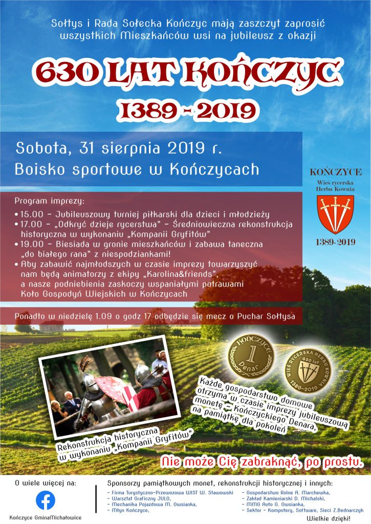O NAS PRIORYTETY/ZADANIA KGW PROTOKOŁY GALERIA KONTAKT Szukaj Szukaj 21 sierpnia, 2019 10:12 pm JUBILEUSZ 630-LECIA KOŃCZYC Serdecznie zapraszamy na wspólne jubileuszowe świętowanie! Więcej informacji na plakacie. PrevPoprzedni!!! BARDZO WAŻNE – ZALEWANIE KOŃCZYC !!! NastępnySPOTKANIE W GMINIE W SPRAWIE KONCEPCJI ODWODNIENIA WSINastępny