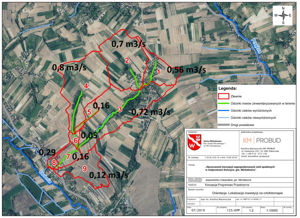 Wyróżnione podzlewnie jako całość podczas nagłych gwałtownych opadów generują przepływy prawie 3 krotni większy niż możliwości przepustu pod droga powiatową w centrum Kończyc.