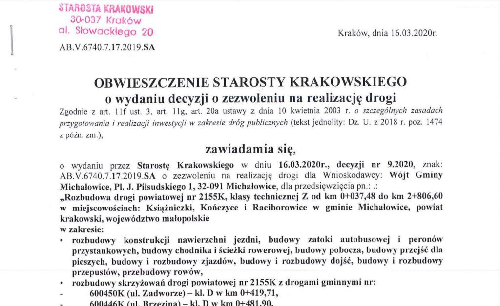 Bardzo ważna decyzja, która otwiera wykonawcy możliwość fizycznej realizacji inwestycji. Inwestycja jest niezwykle ważna dla naszej i sąsiednich wiosek ze względów bezpieczeństwa a przy okazji estetyki.