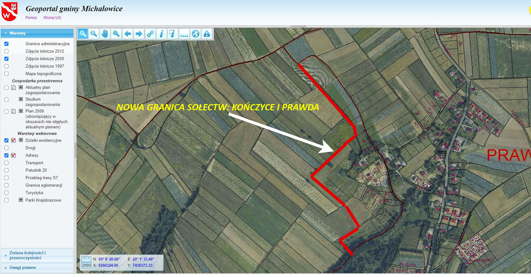 Informujemy, iż zgodnie z Uchwałą Rady Gminy Michałowice nr XXIX/225/2020 (uchwała z dn. 14 grudnia 2020 r. w sprawie uchwalenia Statutów Sołectw Gminy Michałowice oraz zmiany granic sołectw: Zdzięsławice, Więcławice, Wilczkowice, Zerwana, Kończyce, Prawda) nastąpiła zmiana granic naszego sołectwa.